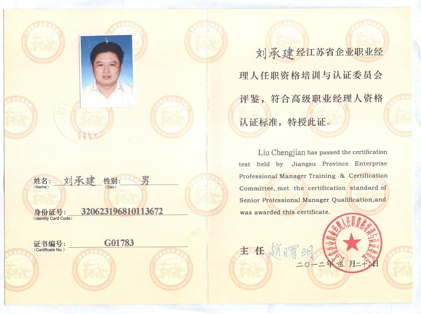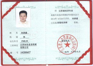 Liu Chengjian, senior economist, senior professional manager, mechanical engineer, intellectual property engineer, is currently the chairman of Jiangsu Rudong Jinyou Machinery Co., Ltd., the person in charge of the Engineering Technology Research Center and the party branch secretary.