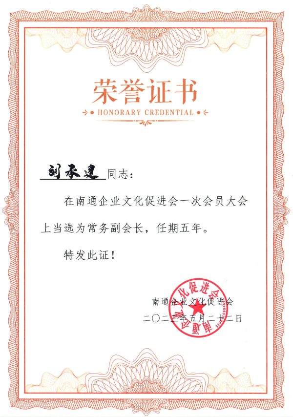 While his business is developing rapidly, he is also committed to the development of social undertakings. He serves as a director of the China Petroleum and Petrochemical Equipment Industry Association, vice president of the Beijing Green Design Promotion Association, director of the Small and Medium Enterprises Alliance of the Jiangsu Federation of Industry and Commerce, deputy secretary-general of the Small and Medium Enterprises Committee of the Nantong Federation of Industry and Commerce, executive vice president of the Nantong Corporate Culture Promotion Association, executive member of the Rudong County Federation of Industry and Commerce (Chamber of Commerce) and vice president of the Rudong County Jugang Street Entrepreneurs Association.